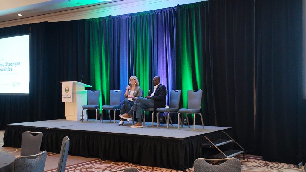 Inter-Faith Food Shuttle’s President and CEO, L. Ron Pringle, opened up the 2025 conference, followed by a community conversation that explored what it looks like when a neighborhood transforms itself from a food desert into a food oasis, centering voices from the Conetoe Family Life Center and leaders driving nutrition security through local, sustainable agriculture. Attendees engaged directly with community members and peers nationwide, reflecting on resilience, shared learning, and what it takes to create lasting, community‑led change.